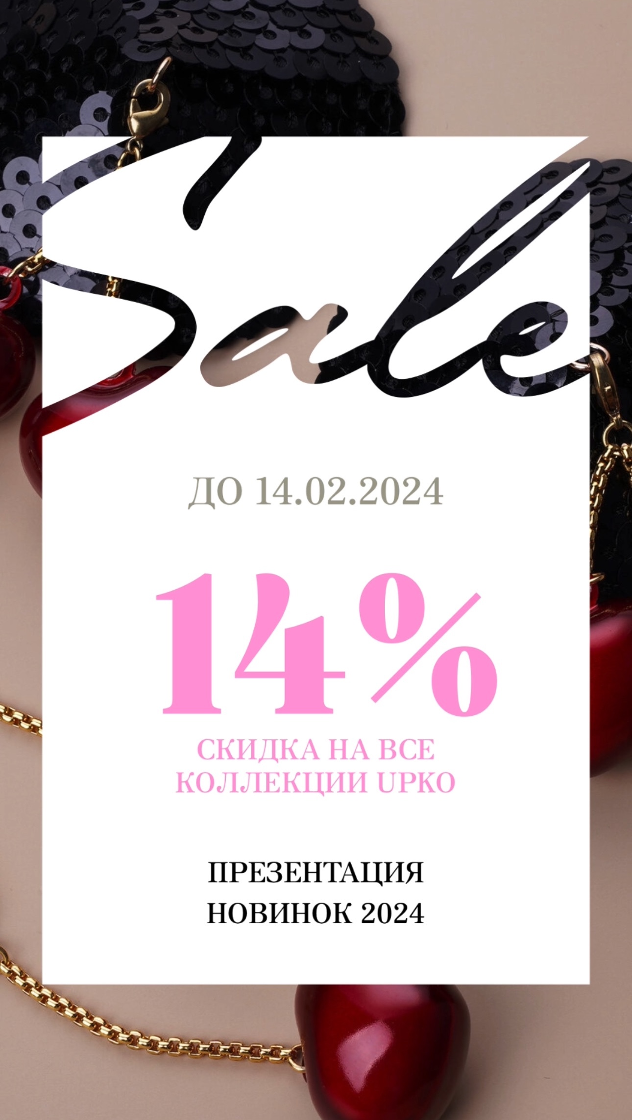 Вы один из первых узнаете о новинках бренда и самых привлекательных предложений. В преддверии волшебного дня Святого Валентина мы, переполненные безграничным чувством любви, хотим предложить Вам особенный подарок - скидку 14% на весь ассортимент UPKO.